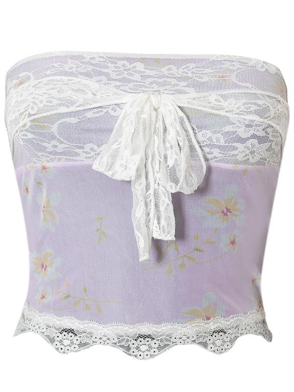 Description: Stand out from the crowd with these sexy tube tops. Crafted from mesh with lace fabric. it offers a fresh and elegant look. It features lace tie strap fastening. floral inspired print and has scalloped hem design.