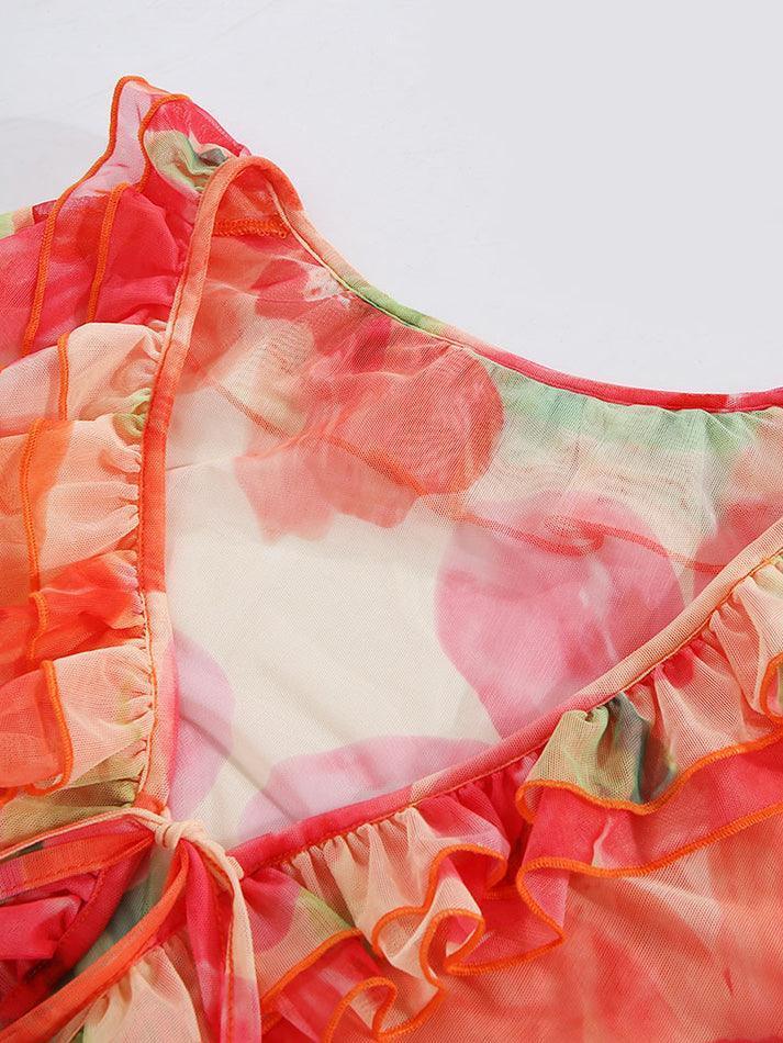 Description: Stay ahead of the fashion curve with our trendy Plunge V Neck Chiffon Blouse. Perfect for street-style looks. this blouse features a flattering Plunge V Neckline and long sleeves for a chic and sophisticated look. Made from a comfortable Polyester Blend fabric. it offers a regular fit that suits your everyday activities. The printed allover design. ruffle trim. open front. and flared cuffs add a touch of elegance and playfulness to your outfit. Embrace fashion-forward style with this must-have blouse.
