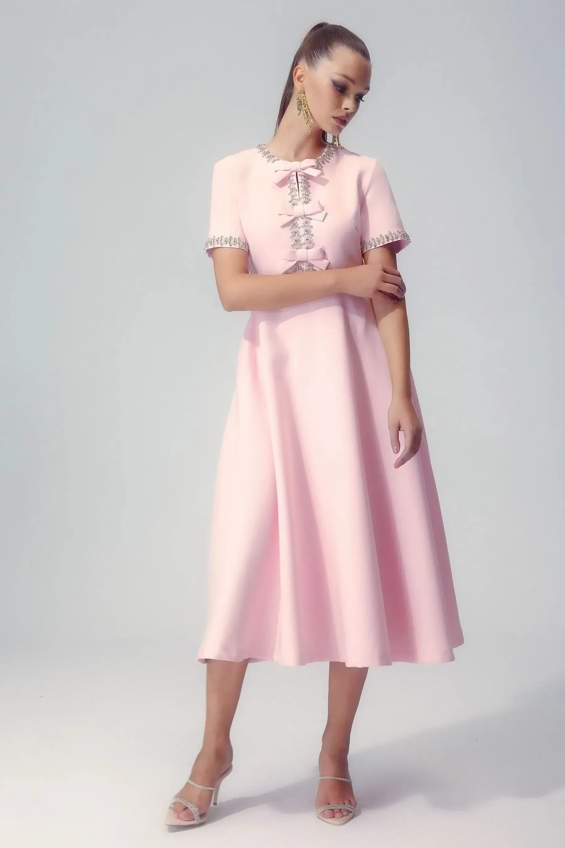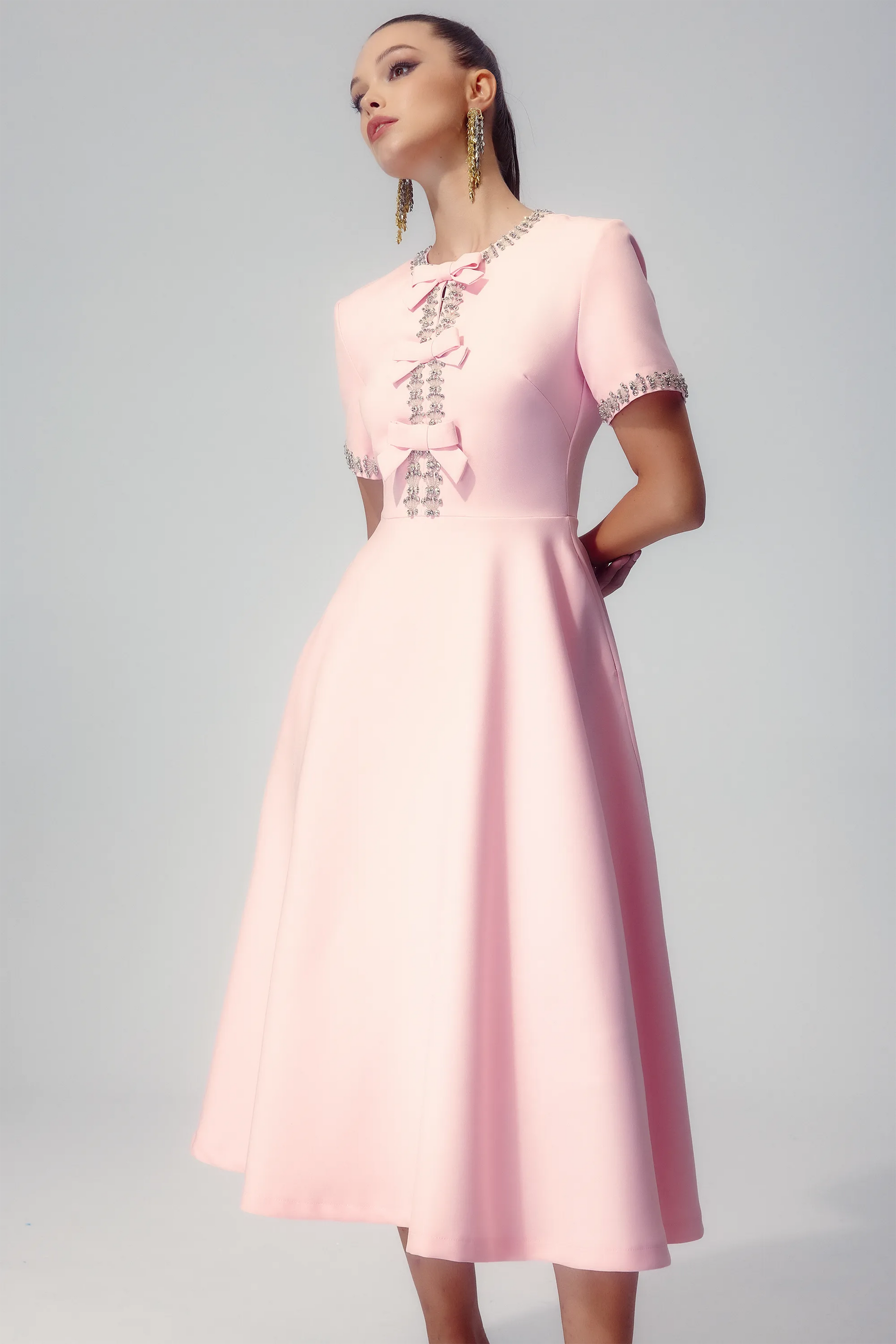 ROWAN BOWKNOT CRYSTAL-EMBELLISHED MIDI DRESS �ELEGANCE WITH A SPARKLE