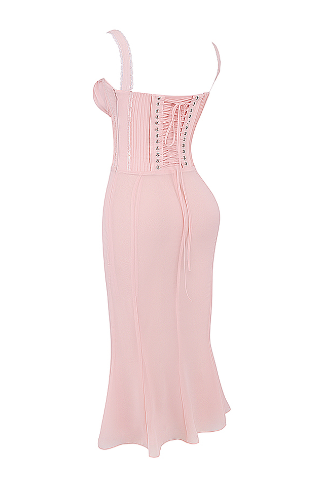 Syrah Soft Peach Strappy Midi Dress