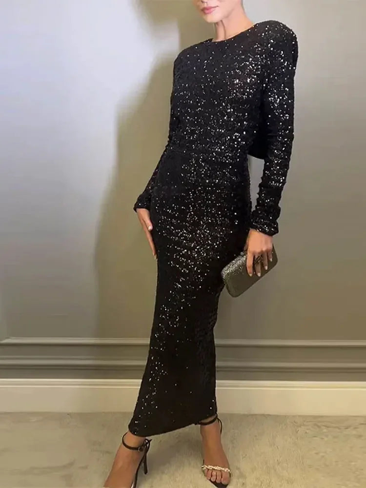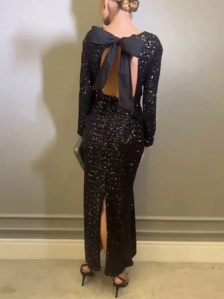 Tina - Back Bowknot Sequin Bodycon Maxi Dress