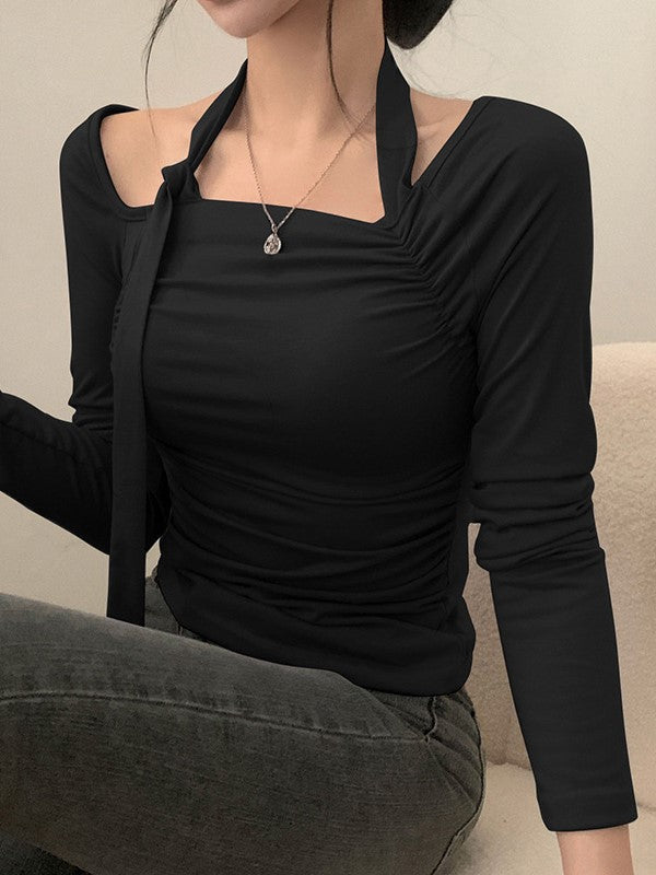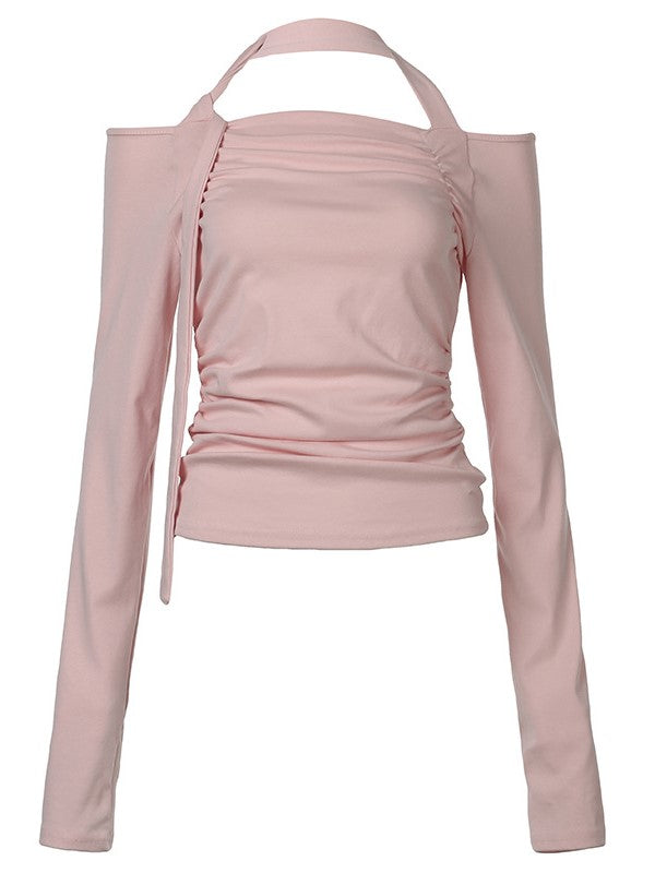 Vintage Halter Tie Up Ruffle Long Sleeve Top