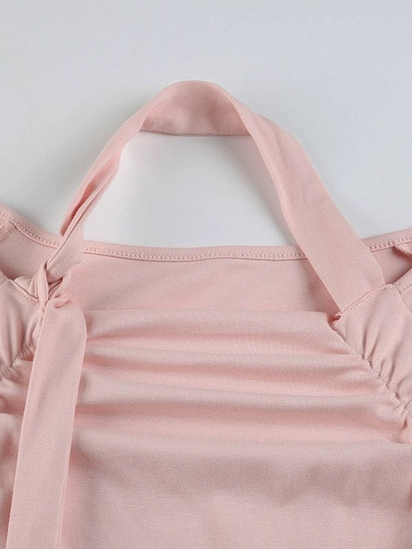 Chic Halter Tie-Up Neckline: This top features a stylish halter neckline with a delicate tie-up detail at the back. offering a flattering and feminine look. The halter design accentuates your shoulders and neckline. adding a hint of allure to this vintage-inspired piece.