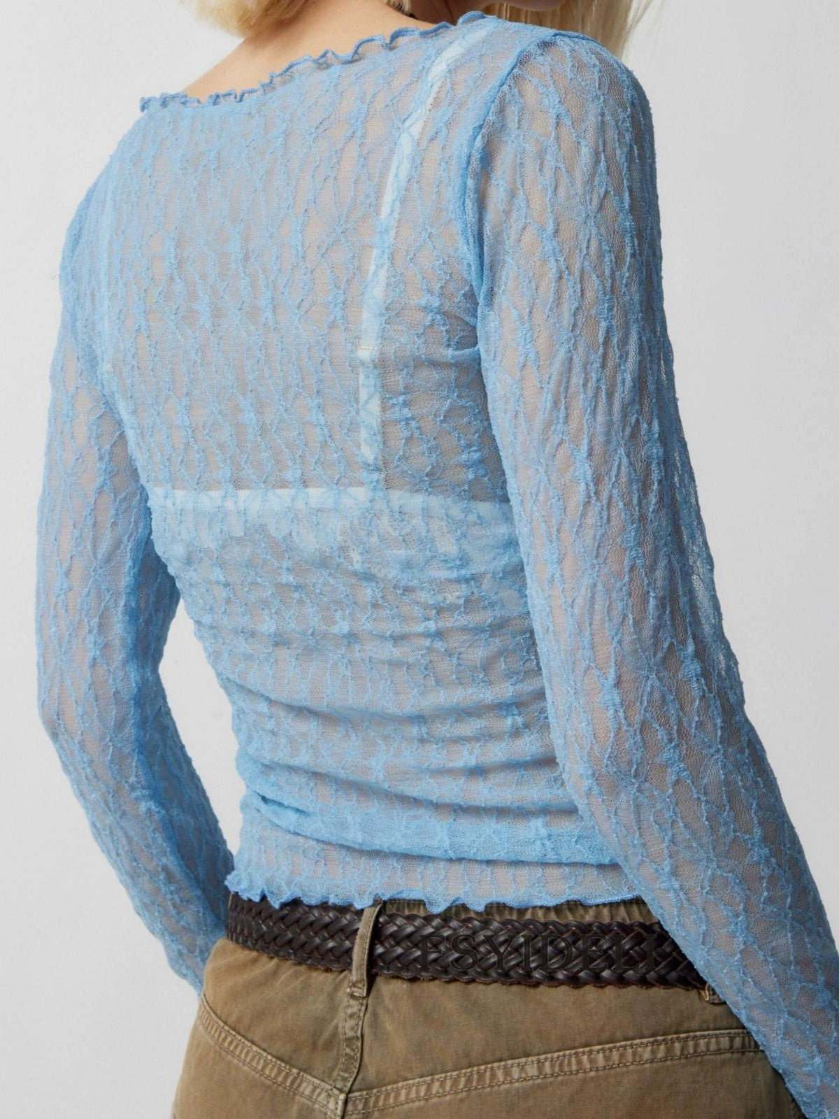 Vintage Perspective Lace Mesh Slim Long Sleeve Tee