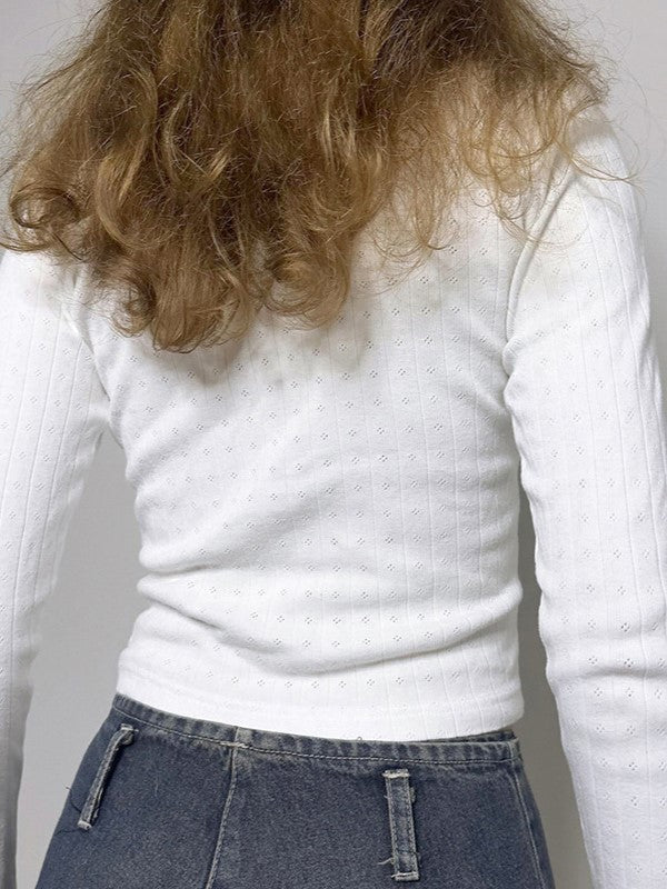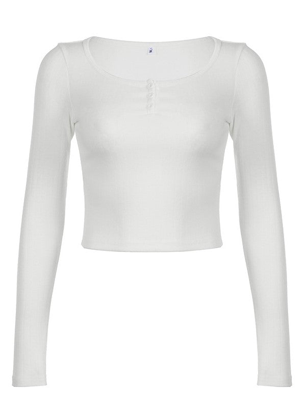 White Classic V Neck Button Up Long Sleeve Top