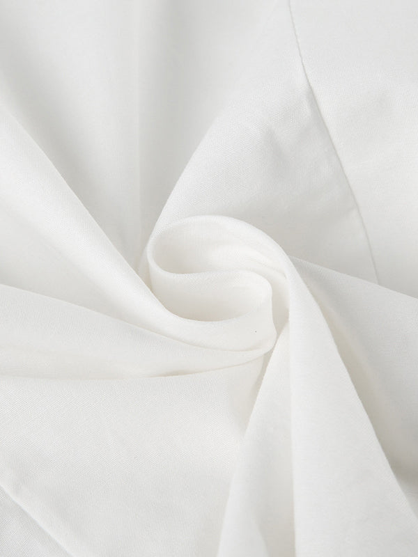 White Vintage Slim Waist V Neck Short Sleeve Shirt