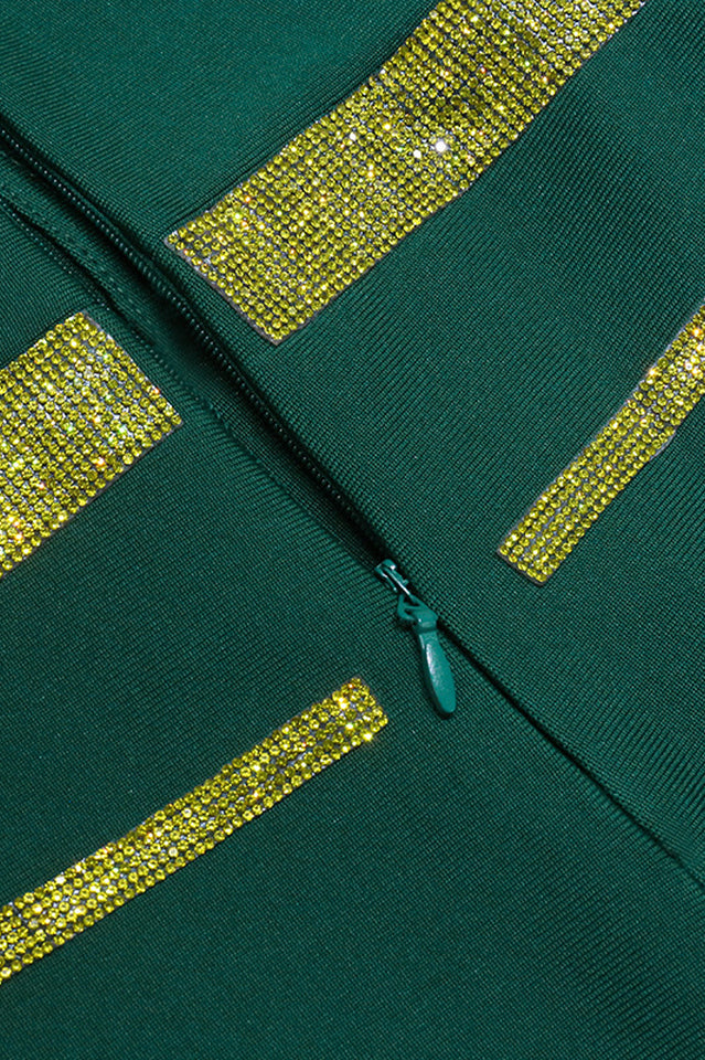 Our bandage jumpsuit_will leave you positively spellbound!This jumpsuit begins with_halterneck that flows into a bodycon silhouette.Gold bands giving you a mesmerizing detailing that sparkles effortlessly.Complete this look with gold_earrings and heels!